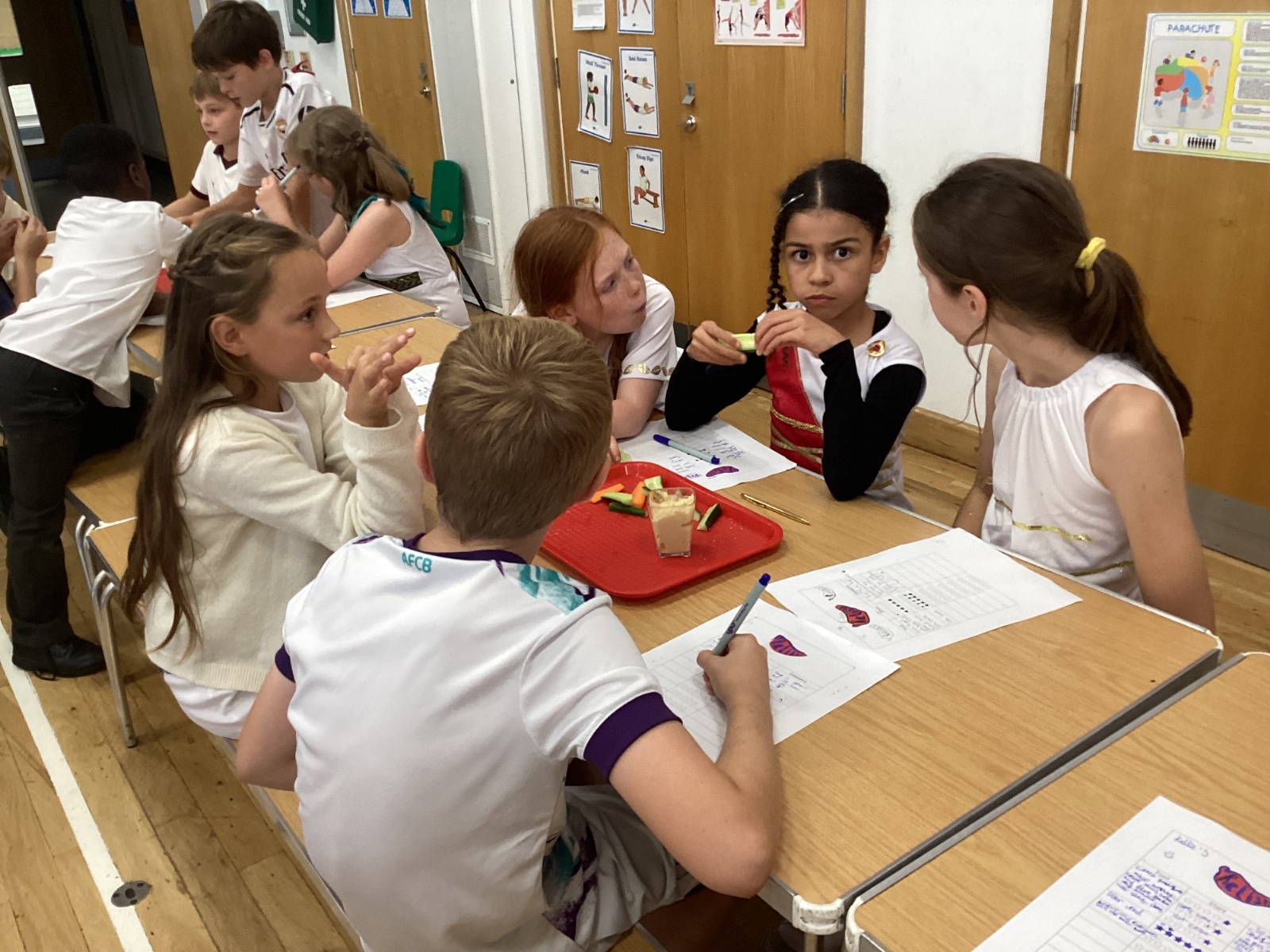 No Greek day would be complete without delicious food. We got to taste a range of traditional Greek flavours, from olives and pitta bread to juicy grapes and creamy dips. Some of us were brave enough to try foods we had never eaten before – and we even gave out star ratings for our favourites. At lunchtime, our school dinners were specially transformed into a Greek menu prepared by Relish, giving us the full experience of Greek food throughout the day.